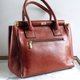 這是個功能性極強,而且外型特別的復古真皮袋,很適合上班族!巴黎品牌Actuel的設計,意大利真皮製造,袋角稍為磨蝕,但整體有七成新,上方的金色橫條鎖配上全真皮有一定重量。內部狀態非常好,很大容量,除了有兩個主格和中間的拉鏈格外,背面亦有小拉鏈格。