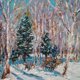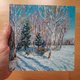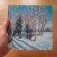 這是一幅原創油畫,由藝術家 Elena Anufriyeva (本人) 手繪於木質畫板並簽名。尺寸:6x6x0.07 英吋 (15x15x0.2 公分)。未裱框。