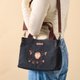 - 小狐狸躲進秋日樹洞,靜靜陪伴妳的每一天。 可側背可手提的兩用設計,黑色布面搭配楓葉電繡裝飾,讓妳的穿搭多一份溫柔與故事感。 長25*高19*寬10.5(內有兩個內袋)