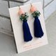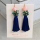 深いブルーの花に桜色ビーズと紺青のタッセルを合わせ、クラシカルで上品な華やかさを耳元に添えます。