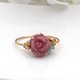 薔薇の彫刻が施されたシリシャスシストを使用したワイヤーリングです。