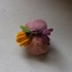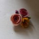 使用不同植物染材的的羊毛製成的兩種玫瑰搭配向日葵與紫色小花,讓您充滿春天般的優雅與甜美!