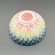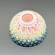 此作品是透過四到五層不同的釉藥層層堆疊,藉由每層施釉厚薄拿捏,並窯燒至1260度,歷經20小時的烈火淬煉,讓它在窯裡收縮流動,產生出孔雀羽毛的斑紋與流動感。