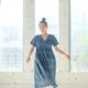 インド更紗のdabuプリントと呼ばれる、泥状のものを用いて生 地に色が染まらないようにプリントする泥防染技法を用い、 indigoで染め上げています。