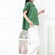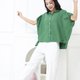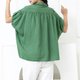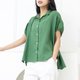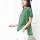 襯衫領袖口皺褶前短後長上衣 / 綠色 透氣舒適,春夏皆宜