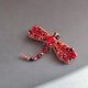 蜻蜓刺繡胸針,手工水鑽串珠胸針,送給妻子的禮物,現代珠寶紅蜻蜓胸針,訂製牛仔夾克