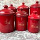 50741-稀有完整六入法國古董艷紅琺瑯收納罐 Extremely rare set of six complete antique French enameled storage canisters