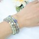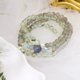 隔珠採切割面月光石、天河石、磷灰石、貝殼珠、18K包金隔珠點綴。可繞4圈在手上,採用日本彈性線製作。