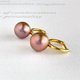 バラのつぼみという意味を持つ、珍しいルベルパールのピアス。自然の中でできた独特のメタリックローズゴールドの発色を持つ、バロックパールは、とても希少なパールです。 直接パールが金具に固定されている中折れ式デザインのパーツを使用してみました。 パールは染めた色ではないので左右多少色の違いがありますが、着けた際には気になりません。 自然光と蛍光灯の下で見た色はブラウンやゴールド、ゴールドローズなどと異なり、 照りツヤの良いパールですのでとても綺麗です。 裏側は、ほんのすこしパープル色に寄ったブラウンに見えます。 アボカド色と聞いていますが、ローズブラウンゴールド(?)と言えばいいのでしょうか・・・ 美しい色に惹かれます。 大粒ですが肌との相性も良い色なので、仰々しくなりすぎず、 アボカドブラウンの色が上品さを醸し出します。 ちょっとしたお出かけやワンランクアップしたカジュアルコーディネイトなどにも合わせられる素敵な1点です。 ◆大きさ・素材 パールの種類とサイズ:淡水ルベルパール:直径約11.1mm パーツ素材:silver925 ゴールドコーティング ピアスの全長:約22mm ****注意**** 画像は鮮やかに見えます。実際のお色はもう少し落ち着いた色です。 よろしければ他の作品もご覧ください。 https://jp.pinkoi.com/store/froop ◆簡素ではありますが、ペーパーBOXにお入れしてお送りいたします。