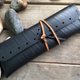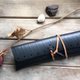 筆袋本體是以輪胎內胎皮製作,皮繩是真皮製作,以皮繩纏繞綁住,使用方便。