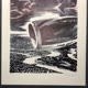 - Realistic graphic art with a view from the porthole on the turbine of an airplane as it flies over the city is made by the author in the technique of color lithography. Edition of 1 of 6 prints signed by the artist.