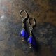 ブルーアンティークボヘミアビーズとヴィンテージブラスのピアス