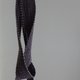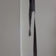 選取植物再生纖維線材先以鐵鏽染色,部分再復染五倍子紫色,再以織帶機織作,將黃銅環織入可當作一個掛環,織帶可以隨喜愛變換繩結造型。