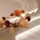 手工雕刻阿拉善三太子造型,象徵純淨童心與好運守護、勇敢與善良的守護之力。融入傳統文化與現代美學,散發獨特靈性氣息,搭配黑加侖火太陽石、紅色阿拉善、彩兔毛、橙月光石,寓意平安健康與財運亨通。精緻金色點綴增添高雅氣質,是送禮與自用皆宜的療癒開運手鍊💗