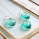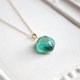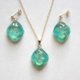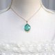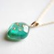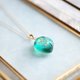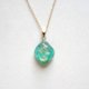 這款美麗的吊墜結合了兩種綠色樹脂、點綴其間的金箔,以及隨著角度變化閃耀著美麗的橘色光澤。