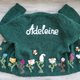 儿童和女孩用纽扣手工针织毛衣,绣有flowers.An 带有孩子名字的个人个性化软开衫将是任何假期的原始礼物。