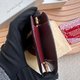 Cartier酒紅色口金零錢包,圓圓的好可愛,實物好美好好看,充滿濃濃的復古感,而且是帶盒帶卡片和防塵布的未使用保存品,內外新淨,五金金亮。內裡的點點只是拍攝沾到的塵而已。