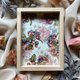 內含一只雙層玻璃的松木相框,兩層植物印花,以及背面的手寫卡一張.