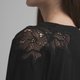 在左側的肩部和衣襬處,點綴了精緻的黑色蕾絲或刺繡花紋,增添了層次感和獨特性