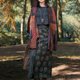- 黑綢是未裝訂的宇宙手稿,黃色是星子潤開的印跡。 那些浮動的圓與點,是凝固的星雲與暗湧的塵埃。 行走時,裙襬漾開一片混沌的宇宙史——舊的星球在膝間坍縮,新的光斑從褶皺間誕生。 鈴鐺細碎作響,彷彿遠古星辰震顫的餘韻,敲打著夏日的燠熱。