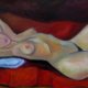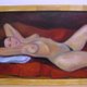 Nude girl resting painting is painted on a stretched canvas.