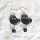驚訝 黑色貓咪- 日本珠耳環