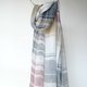京都の糸問屋から一番細い120番手の上質な麻糸を取り寄せ、晒し糸から様々な色に染め上げて手織りした大判ストールです。透けるように薄く、強いハリやゴワつきもなく、とても軽やかにやわらかく身体になじみます。