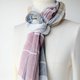 5色の麻糸で織り上げたランダムなチェックを、所々に入れた絹糸が引き立てるデザインです。