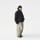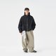 休閒通勤連帽外套以“overfit”為核心設計邏輯,將衣身寬度從領口自然向下擺延展,穿著時形成特有的“空氣感空間”。產品採用聚酯纖維面料製作而成,有多種防護抵禦汙垢,防風、防潑濺等性能。帽簷深度經過反覆調試而採用後半高領的設計,帽繩選用啞光質感織帶,與拉鍊金屬光澤形成材質反差,強化細節層次。Oversize 剪裁配合落肩版型設計,讓單品整體線條更為流暢,提升街頭休閒感。