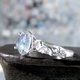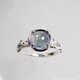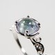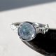 淡いブルーの落ち着いたグラデーションが映える石を、ボタニカルなリングにセットしました。