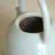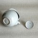 この注器は、信楽の土を使いろくろで成形しています。美しい白色を出すために、京都清水で学んだ薄作りの技法を用い丁寧に削り、釉薬をかけて仕上げています。内側にも釉薬をかけています。茶こし穴は細かい穴を丁寧に開けています。軽くて注ぎやすく湯切れも抜群です。蓋もすり合わせが良くぴったりです。