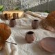 (使用同釉藥、同一窯燒製的容器承裝點心與紙杯組對照,