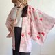 日本製和風印花粉紅色漸層古著羽織和服外套-H408