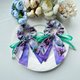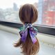 使用兩款不同的美國品牌棉布搭配製作成長尾蝴蝶結、加上緞帶和釘珠做成的髮圈,氣質浪漫,無論上班或休閒聚會都適合配戴。