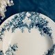 來自法國Choisy-le-Roi 的古董餐盤,它由H. Boulenger & Cie公司製造,材質是更Terre de Fer(鐵胎陶瓷),它的風格以POMPADOUR命名,該名稱直接致敬了法國洛可可時期的重要推動者——龐巴度夫人,風格上屬於洛可可藝術的體現,其年代約在19世紀末到20世紀初,盤面為奶油白色,邊緣飾有細膩的鈷藍色單色印花,圖案以盛開的花卉、捲曲的蔓藤以及不對稱的洛可卡爾元素為主,顯得柔美與夢幻。