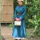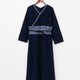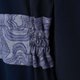 這款洋裝以 和服為靈感 設計,整體剪裁仿照傳統着物的輪廓。腰部特別選用 提花布料(ジャガード),模擬出如同和服腰帶般的質感與層次。背後精緻點綴有 原創設計的花卉刺繡紋樣 —— 芍藥、百合與雞冠花,展現低調卻華麗的和風格調。