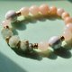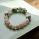 粉色與綠色系心輪能量自然原礦晶石手鍊,特殊寶石切割,搭配黃銅金色調與天然大理石紋路松石,輕時尚與華麗感。