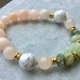 ♡ 材質:粉橘東菱玉(東陵玉)、葡萄石、白松石、黃銅、日本蠶絲彈性線