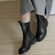- 穿上3.6公分微跟舒適行走 筒高度更修飾腿部線條 配上細緻歐洲進口牛皮 鞋底非常輕走路不負擔 氣墊鞋底減壓腳底