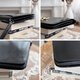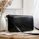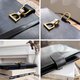 純黑高級珍稀蜥蜴皮革,皮革光滑如鏡面,Gucci標誌性的金屬馬蹄環釦兩端是金色,中間由銀色的夾釦金屬連接,正面五金閃耀無氧化,側邊肩帶橢圓接環些微氧化,內層使用Box Calf 小牛皮皮革質感細緻滑順,可完美同時收納拉鏈式長夾、手機等隨身物品,釦式背帶,也可替換成金屬鏈條背帶,可當肩背包也當成胸包使用,整體狀態極美,是值得收藏的60年代美品