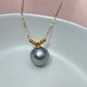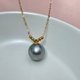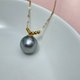 大溪地鉑金灰珍珠以及特有的色彩彰顯出獨特的貴氣。紗織小姐甄選出一枚直徑為10.08mm的大溪地鉑金灰珍珠,皮光細膩,微瑕但瑕不掩瑜,可見清晰鏡面影像,與此同時,此珠的珠層厚度高,可以看到從珠層內側映出來的炫彩伴光,讓人感嘆自然的力量和天地的光芒。配以6顆18K金小金珠和纖細靈動的18K金鏈子,好似6位美麗的小伴娘在守護尊貴新娘。