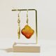 日本滴膠製作海棠花耳環,有藍紫色和橘黃色兩種,搭配捷克復古花珠