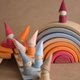 SIZES OF WOODEN EDUCATIONAL TOY FOR CHILDREN: The wooden building toy set 30 pcs: wooden rainbow of 8 elements, assembled which has a size of 1.6х4х7.9 in. / 40x100x200 mm.; 7 half circle cutouts, each board is 0.3 in. / 6 mm. thick; 7 building boards, each board is 0.3 in. / 6 mm. thick; 8 peg dolls height 1.4 in. / 35 mm., in a hat - 2.4 in. / 60 mm.