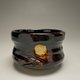 This chawan was made from local Taiwanese clay and then a black glaze was applied. I also dusted wood ash over the pot which turned into an amber glaze during the firing.
