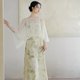 - 【青竹綠】新中式復古中國風 清冷感印花罩衫+吊帶長裙