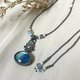 第一眼看見這顆拉長石的想法是:「好美!有著大海般的漸層色,像我遙望大海時,能帶給我平靜,什麼雜念都消失了。」編織時,賦予它可愛的小花圖案,讓這顆拉長石活潑了起來,希望它能帶給它的主人,當思緒煩亂時,能有一抹平靜,也能有活潑開朗的心情。