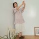 - 可愛減齡的小碎花 荷葉袖及荷葉裙擺穿起來飄逸又輕盈 領口有蝴蝶結綁帶 model身高157cm