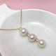 三顆正圓強光的天然淡水珍珠呈現出莫奈油畫兒般的絢麗光線色彩,讓人見了就難以離開目光。紗織小姐讓三顆珍珠按秩序排列,中間貫穿三枚鋯石點綴,形成豎向的三連珠的設計,可以從視覺上顯得女生纖瘦苗條,點亮女性的整個視覺三角區。高品質的天然淡水珍珠也同樣稀有美好,珍珠正圓,表面呈現出難以名狀的絢麗色彩,有微瑕和生長紋,但瑕不掩瑜,社交距離不可見,僅此一件,在此等你。