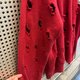 こちらのニットはフロントとアーム部分に穴があいており、インナーに柄シャツ、カットソーなどをもってくるとおしゃれにきていただけると思います。