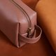 這款皮革化妝包採用精緻的巧克力色真皮製成,以極簡設計呈現豐富質感,散發低調而高貴的光澤。作為真皮包款,配備黃銅色YKK拉鍊確保安全閉合,並配有堅固提把提供舒適握感。